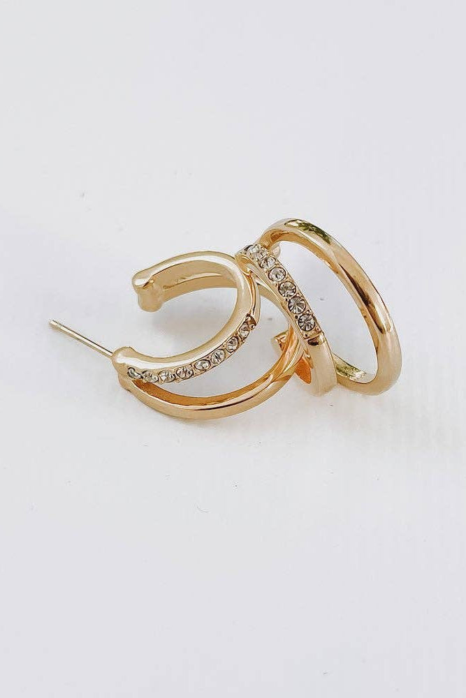 Get ready to steal the show in these Stole The Show Crystal Double Hoop Earrings! This accessory is perfect to style all year round, and will always dazzle up your looks. These double hoop earrings include one larger plain gold hoop and one crystal studded smaller hoop. A true show stealing look!