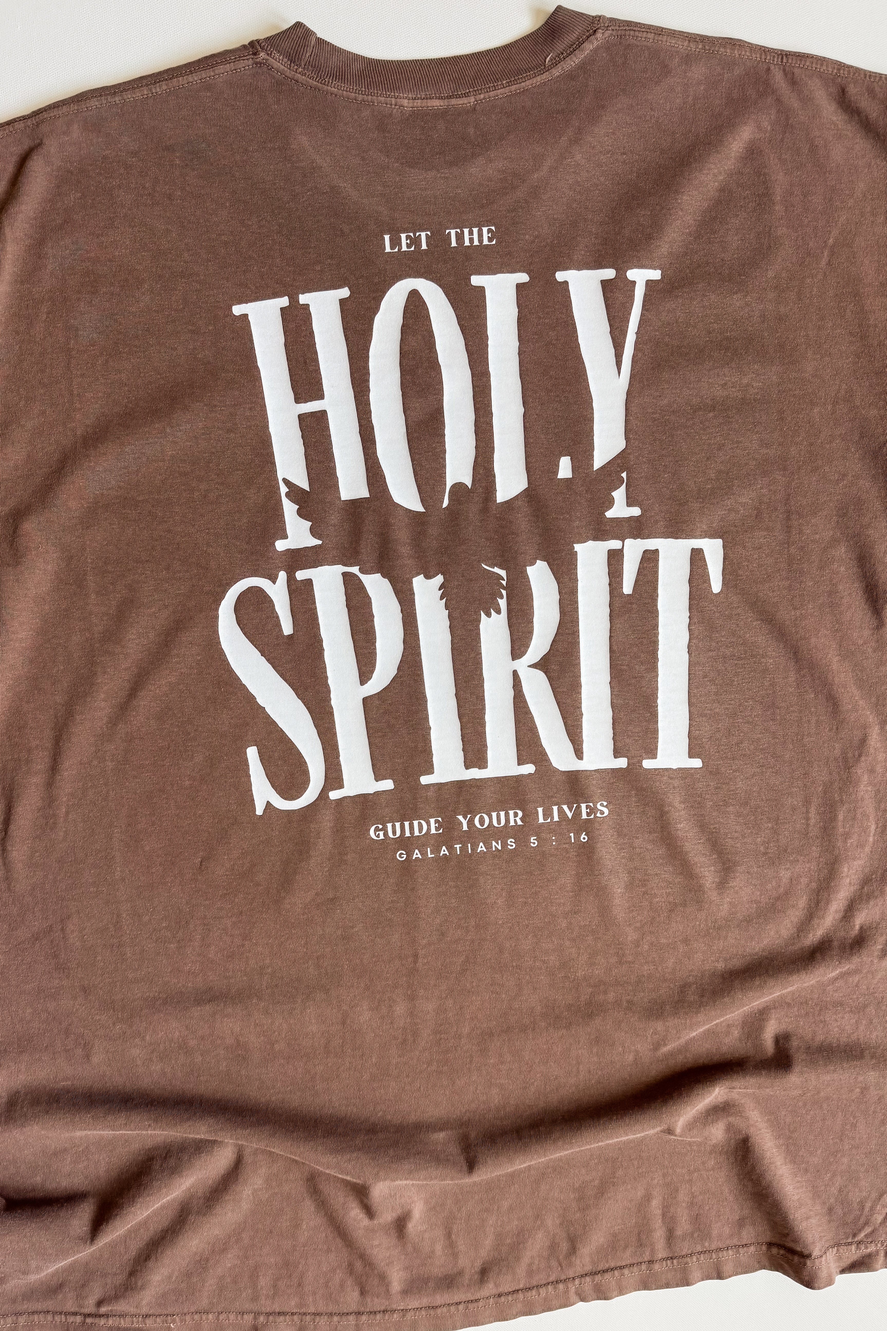 Holy Spirit, guide our lives. This reminder of a heart posture to desire to serve the Lord in what He has for us is printed on a Comfort Color tee. It is a full back print with a front chest patch print.