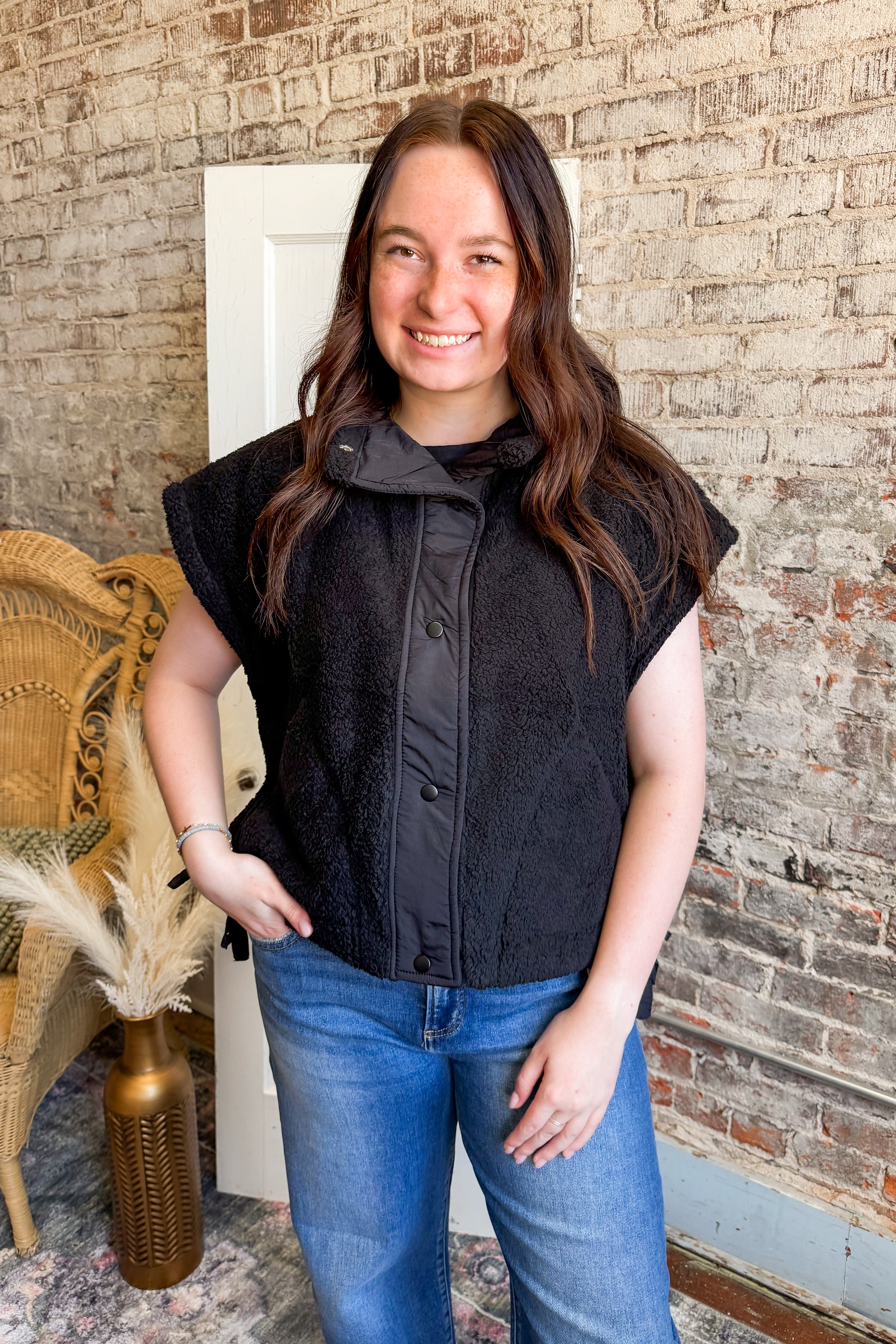 The sherpa vest is perfect for adding a fun, sporty edge to your look. On the flip side, it is an easy piece to style up for a dressier casual look as well. Throw this vest on with multiple pieces to create endless looks.