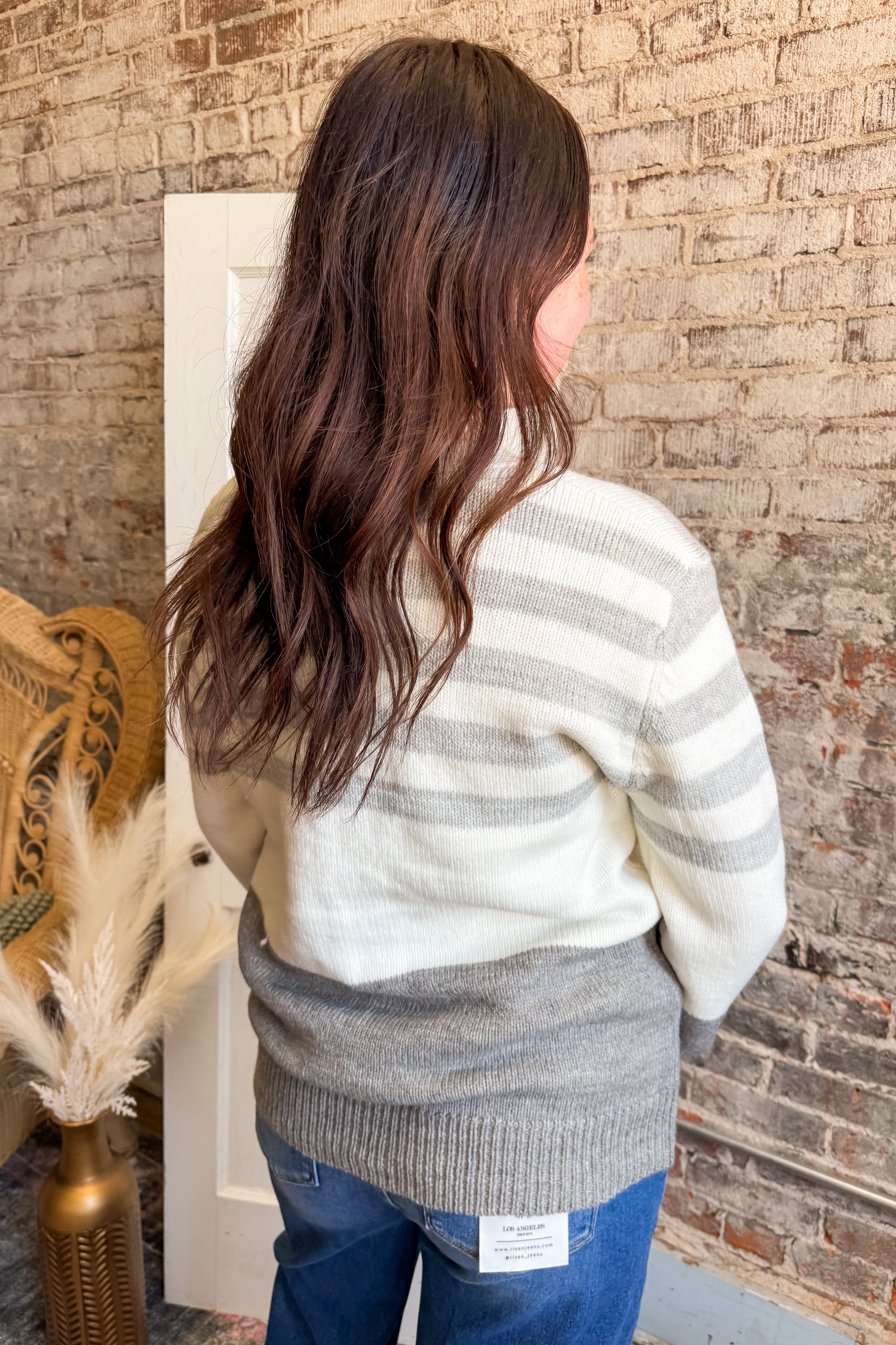 This is the perfect cardigan for every day wear! The cool, neutral grey tones are an easy compliment to any outfit.