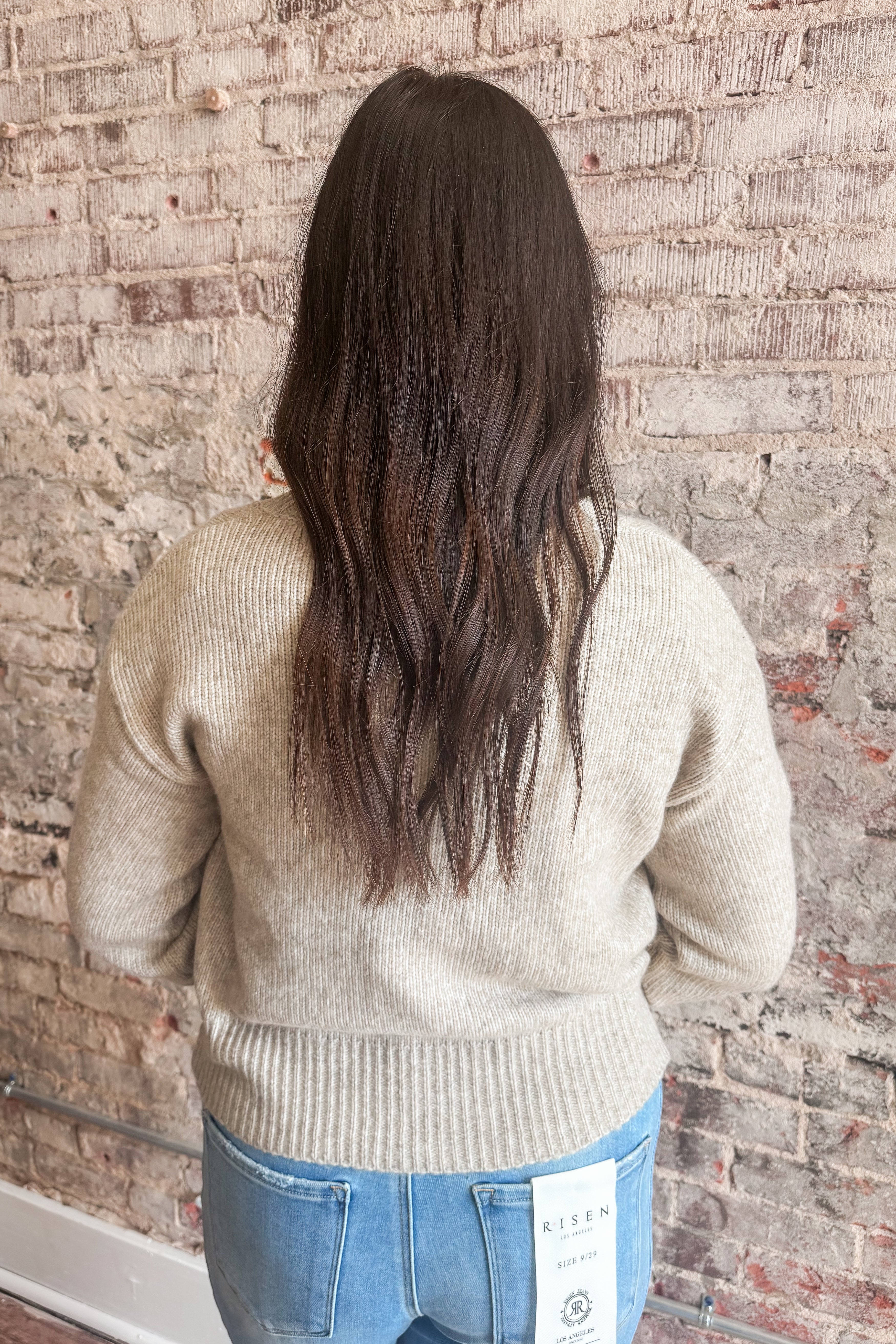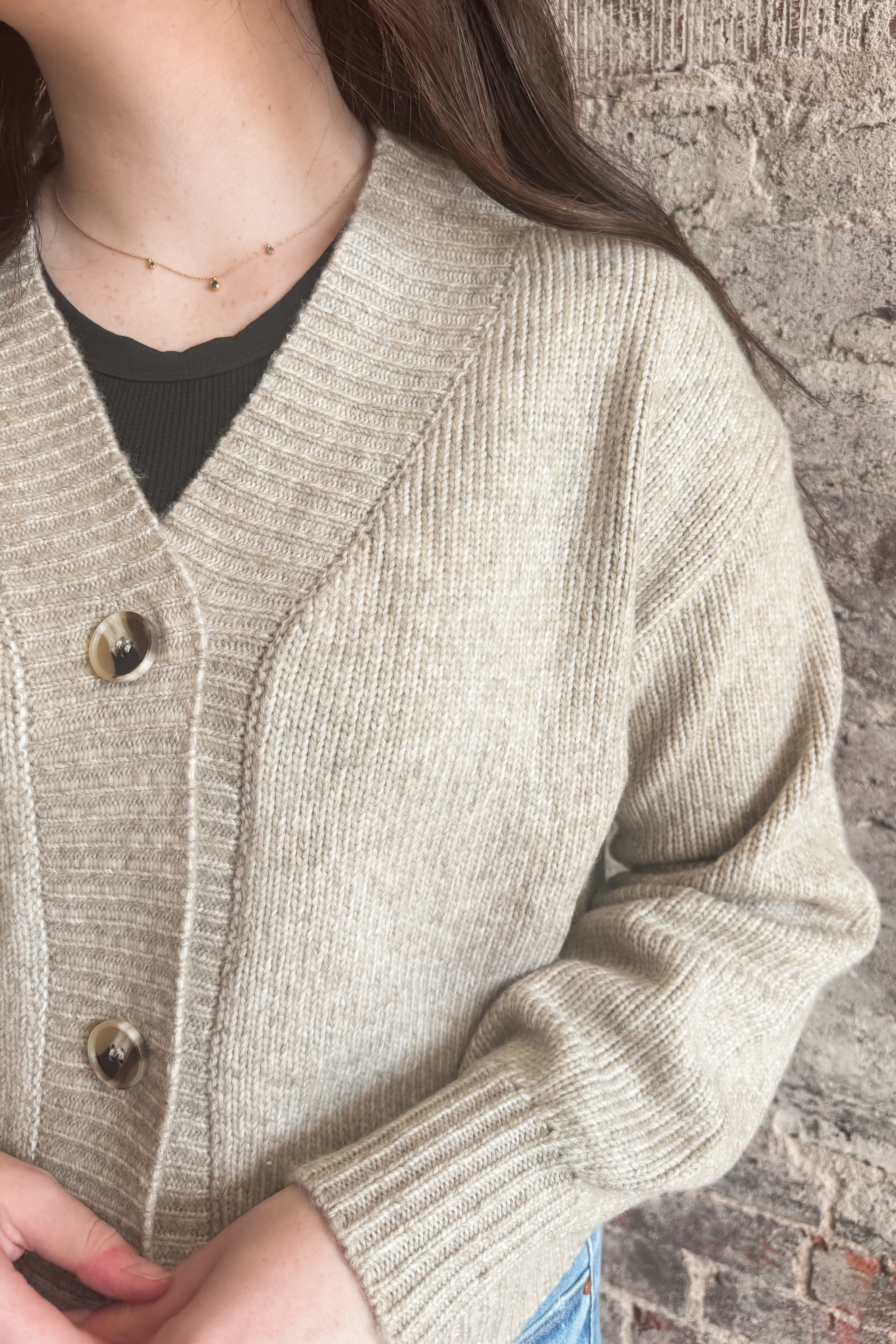 This classic cardigan creates an easy outfit that looks very intentional.