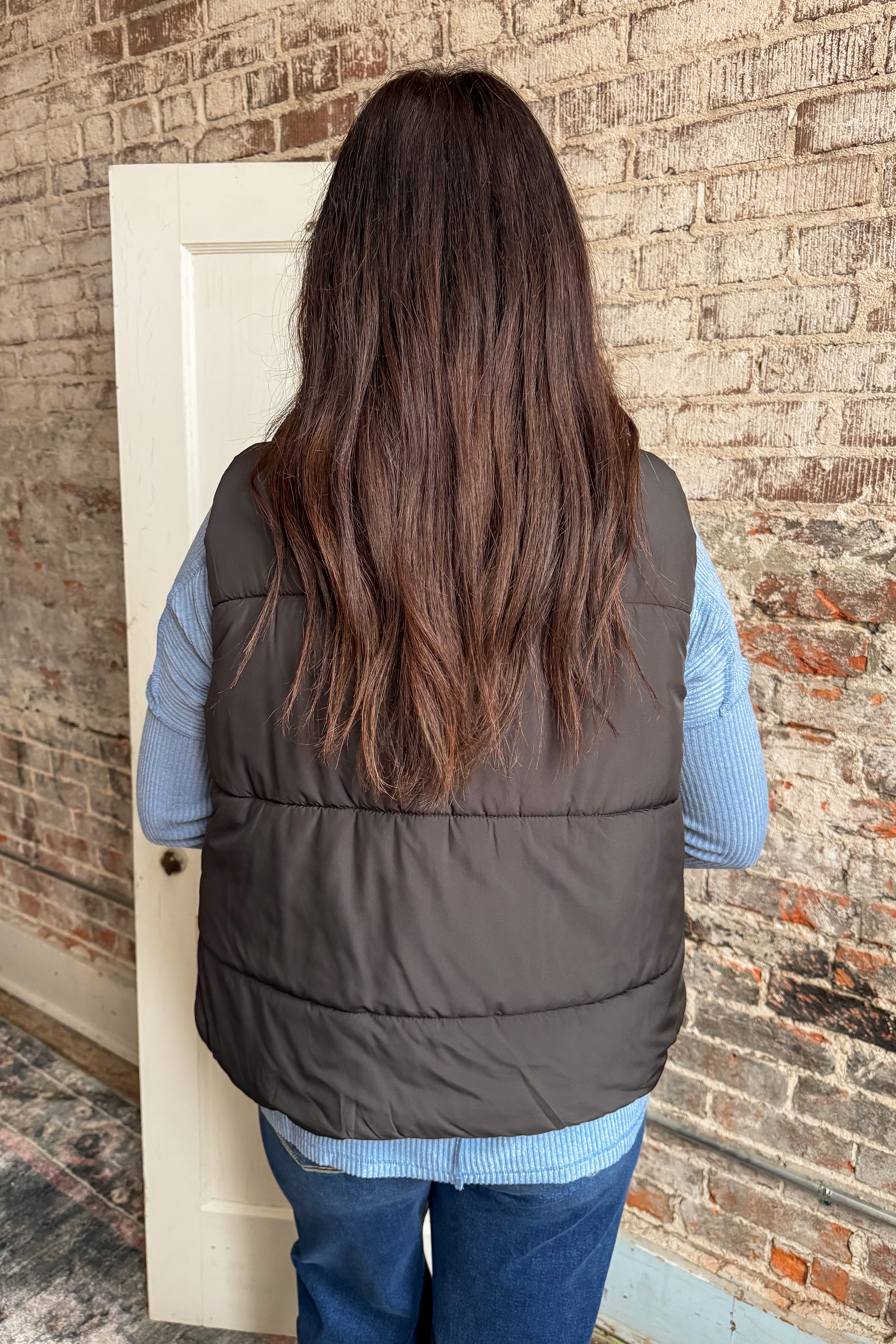 This puffer vest is chic and makes a great pairing piece to really polish your look. It adds the perfect touch to layering tops, sweaters, and even crewnecks.