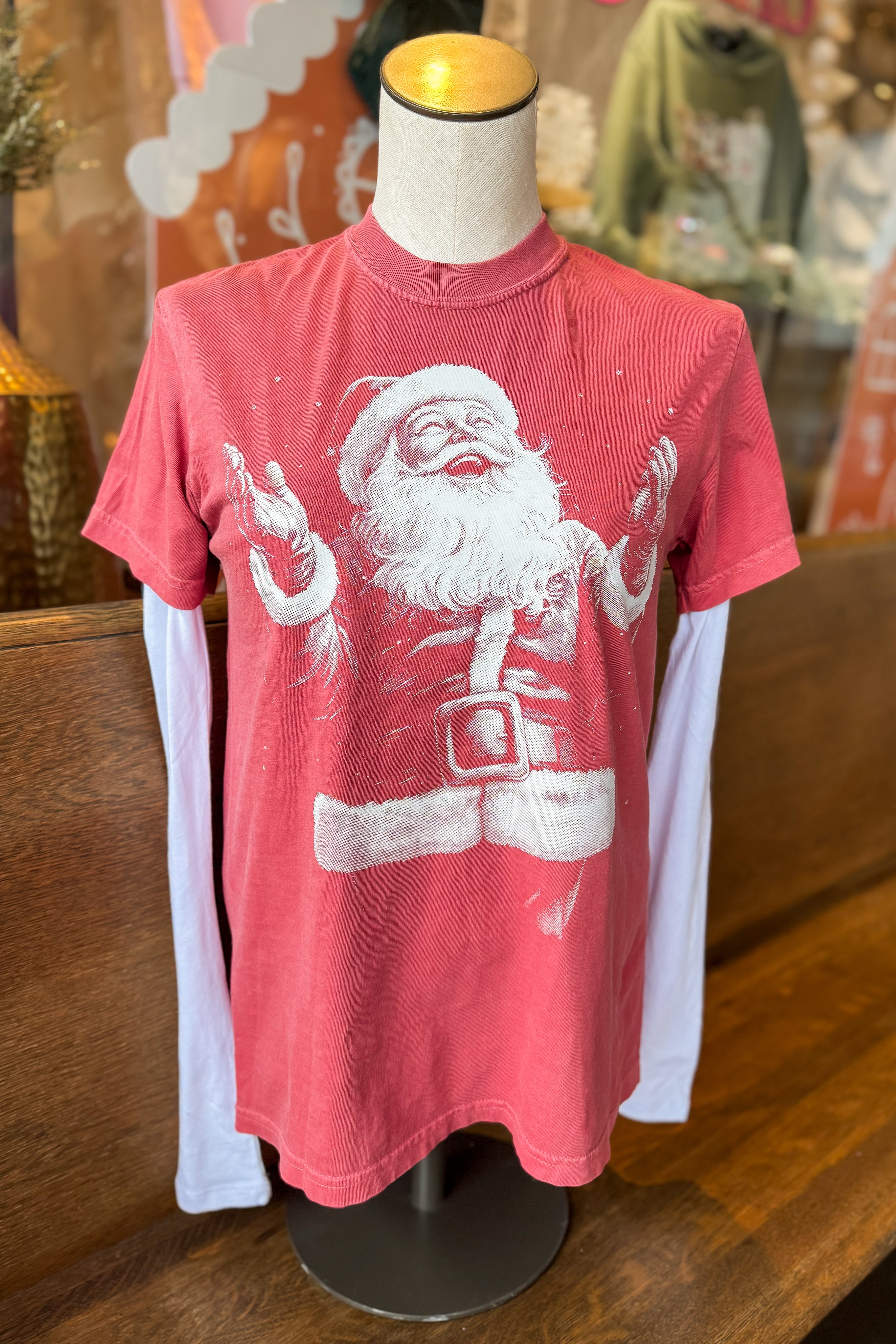These joyful Santa tees sold out in store! We are taking preorders now. Please expect about 1 week for production.