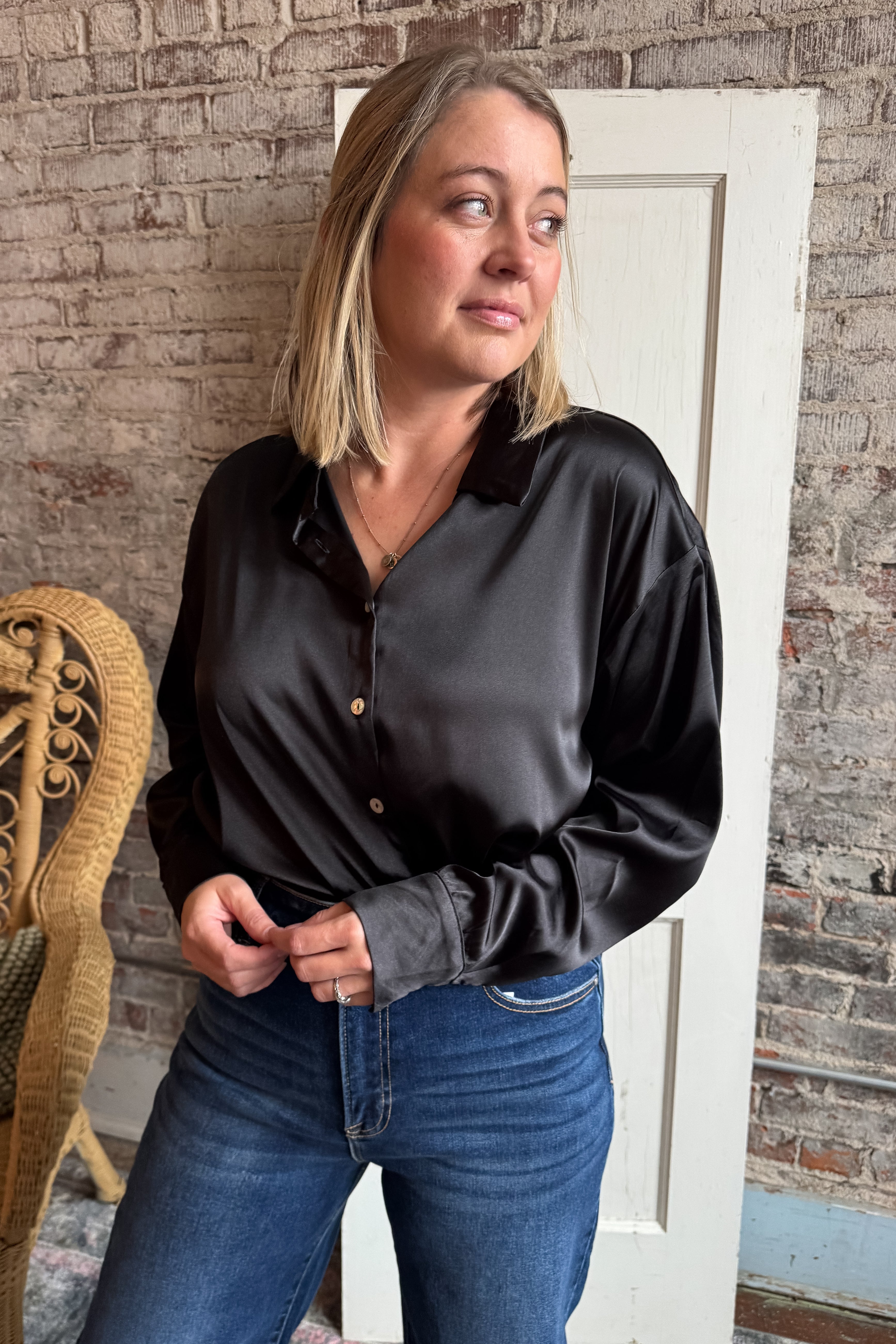Great for the office to date night, this satin shirt is classy and a great staple piece.
